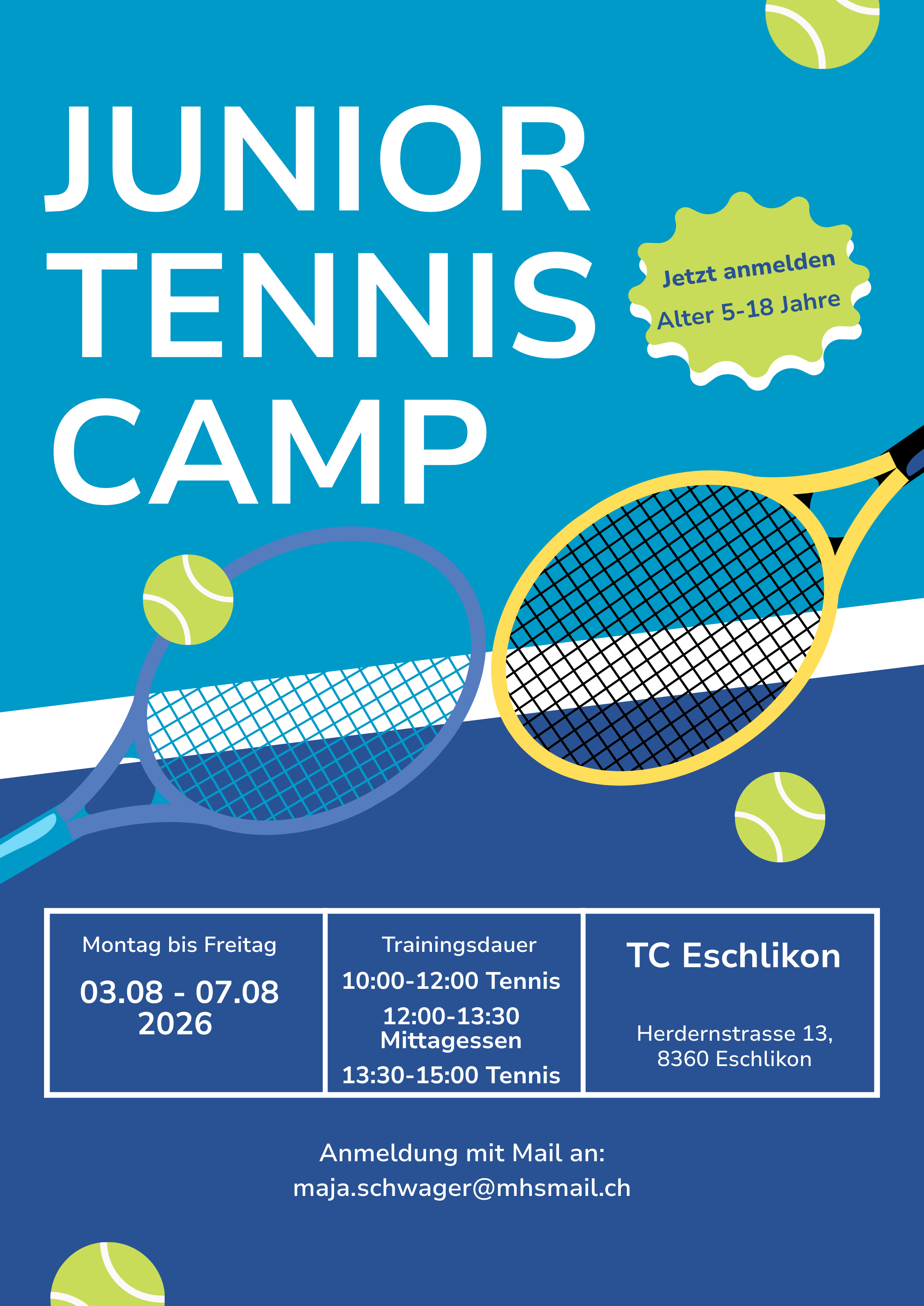 Das Sommercamp in den Sommerferien!Vom 03.08.2026 bis 07.8.2026 TC ESCHLIKON TC Eschlikon anmeldung TC SIRNACH TC Sirnach anmeldung